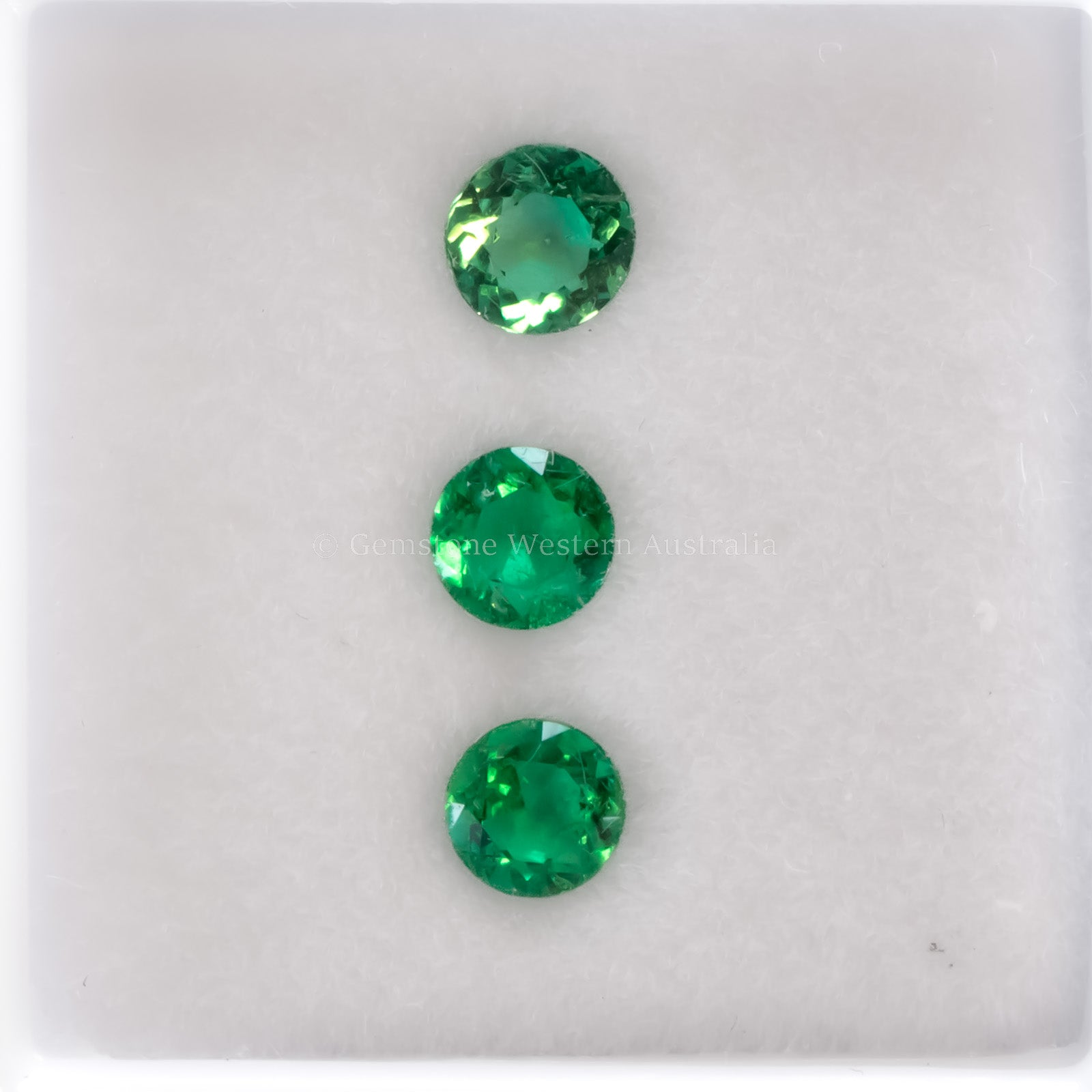 0.57 CT NATURAL COLOMBIAN EMERALDS - 3 PCS SET - ROUND CUT