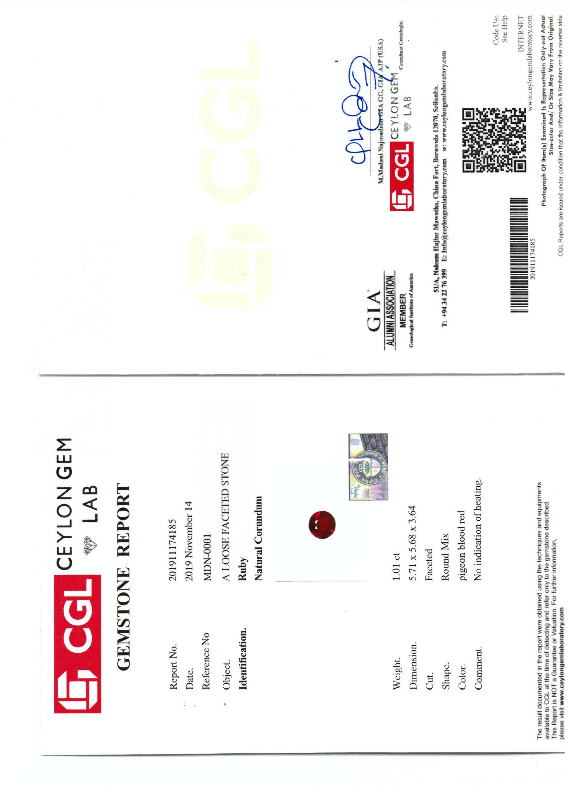 Certificate: Ceylon Gem Lab, Gemological Association of Australia