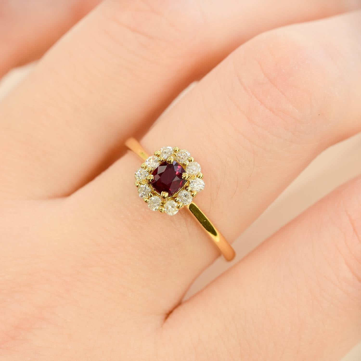Cushion Cut Ruby and Diamond Halo Ring 18K Gold