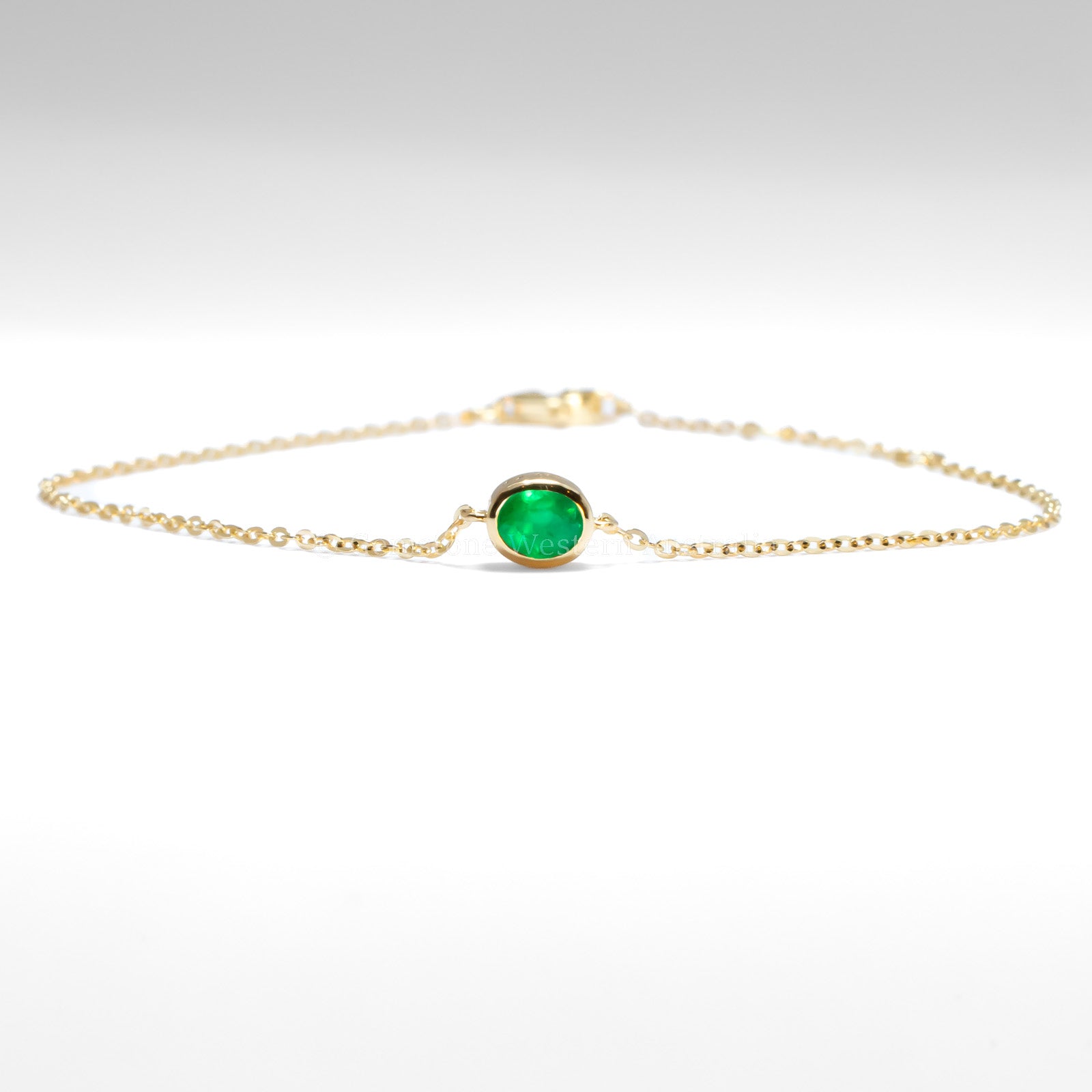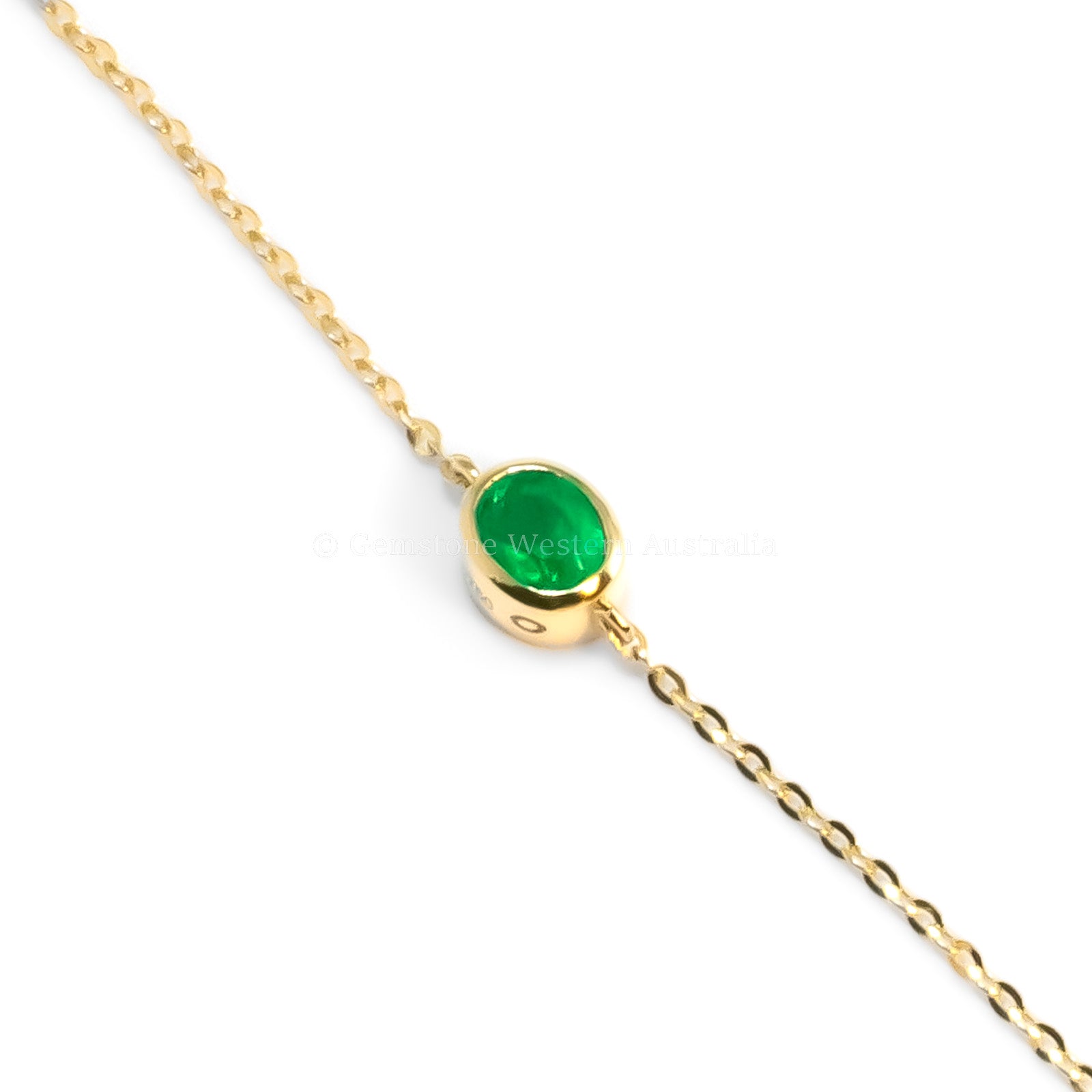Colombian emerald bracelet This Colombian emerald bracelet showcases a natural 0.45ct oval-cut emerald, bezel set in 18K yellow gold for a sleek and refined look. Designed for versatility, the bracelet measures 23cm and features three closure options, ensuring a comfortable and adjustable fit. The vibrant Colombian emerald adds a timeless elegance, making this bracelet perfect for everyday wear or layering with other fine jewellery. Explore our collection of 2000+ gems in stock, including Loose Emeralds. Can't find what you want? Contact us here for a wider selection. For custom designs, expert advice, and more information, book here a complimentary appointment with our expert gemologist and designers.