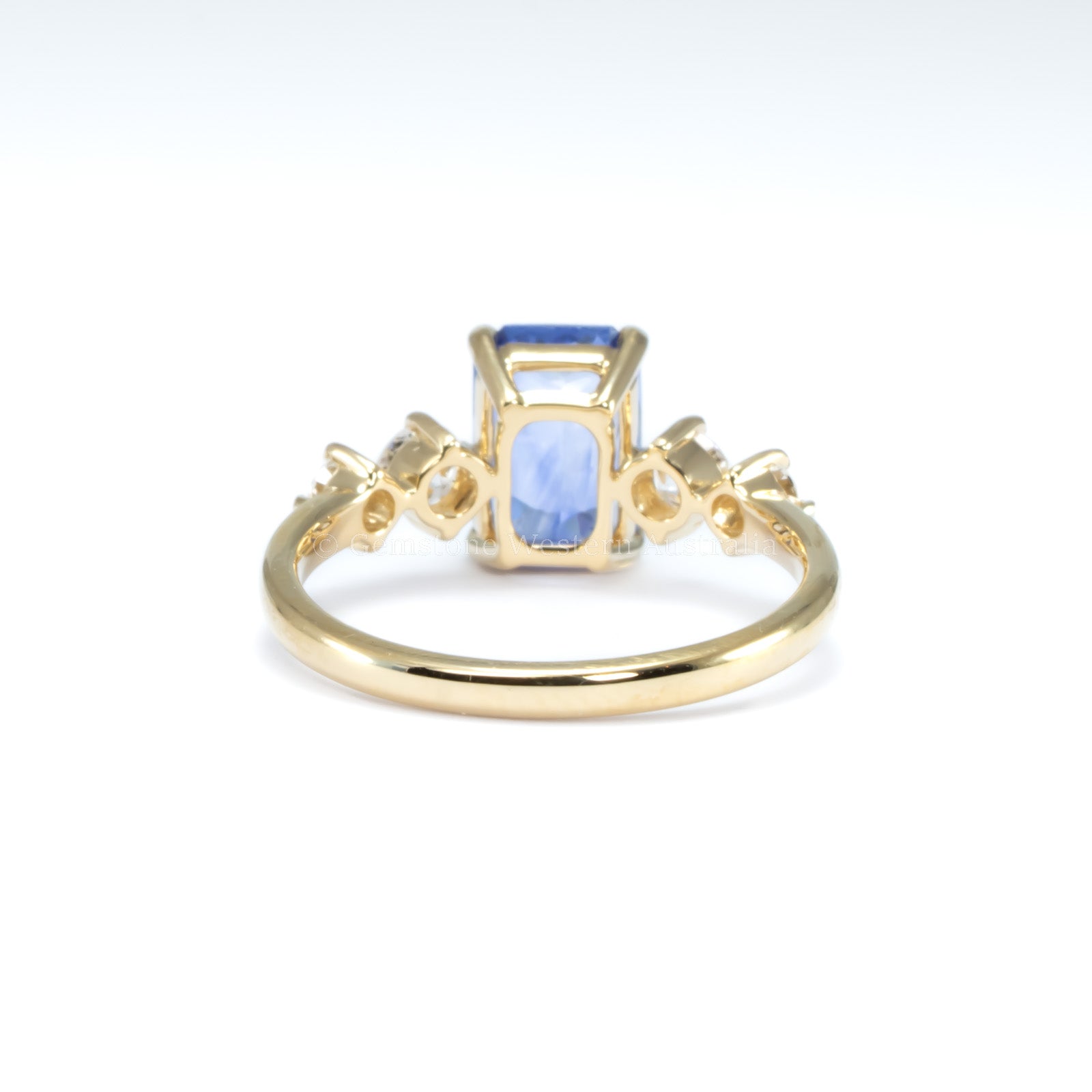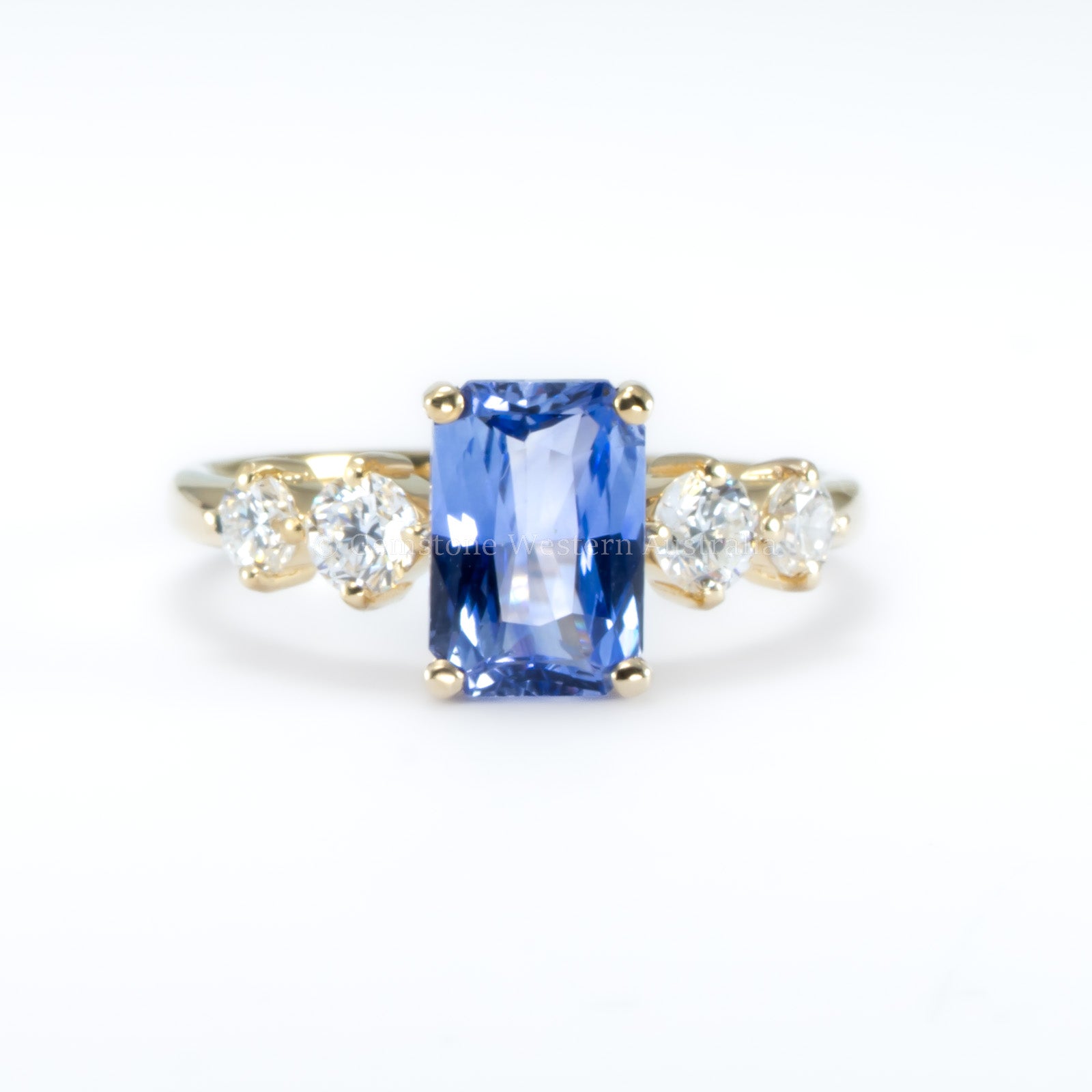 • Central stone: Natural blue sapphire, Radiant mix cut. Weight: 2.01ct.