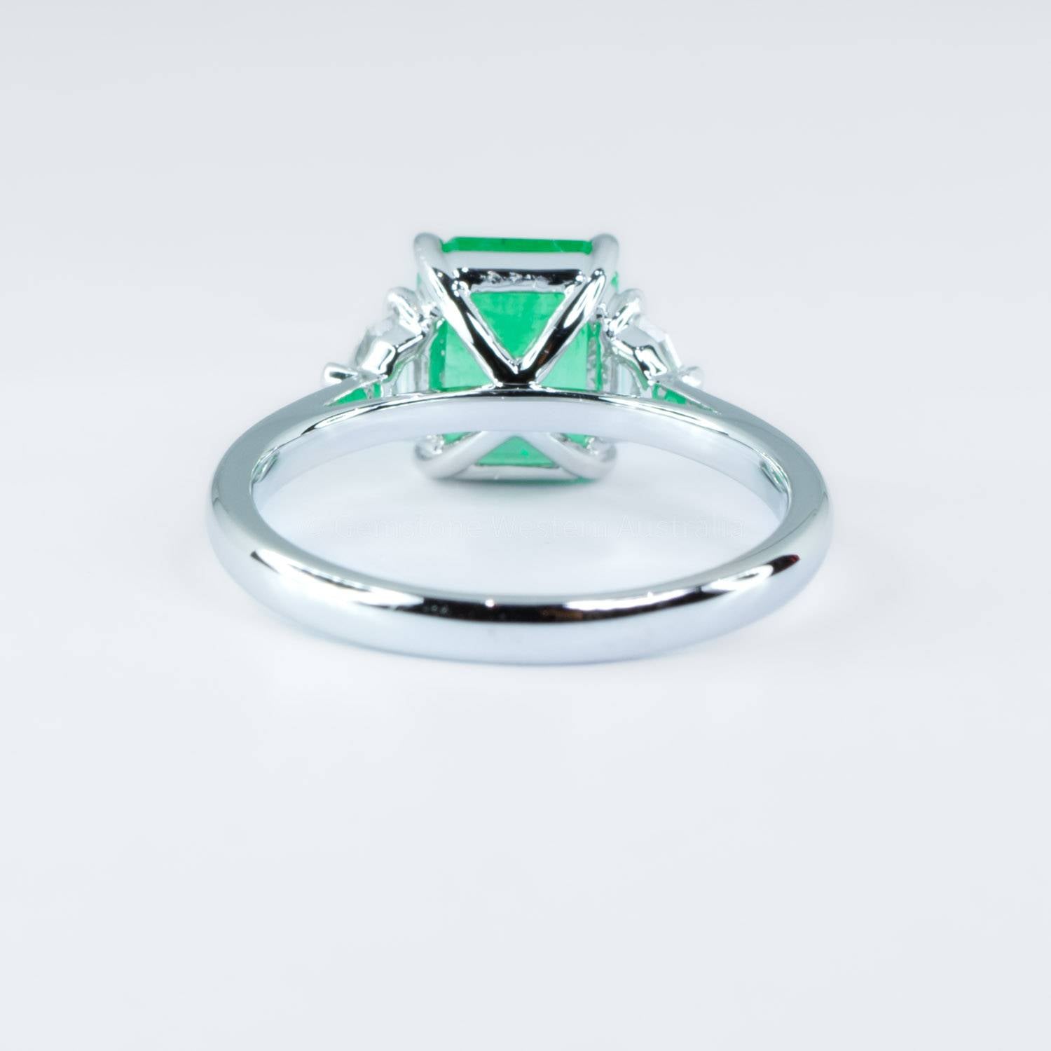 2.21ct Emerald Cut Emerald Ring | Colombian Emerald and Diamonds Three Stone Ring
