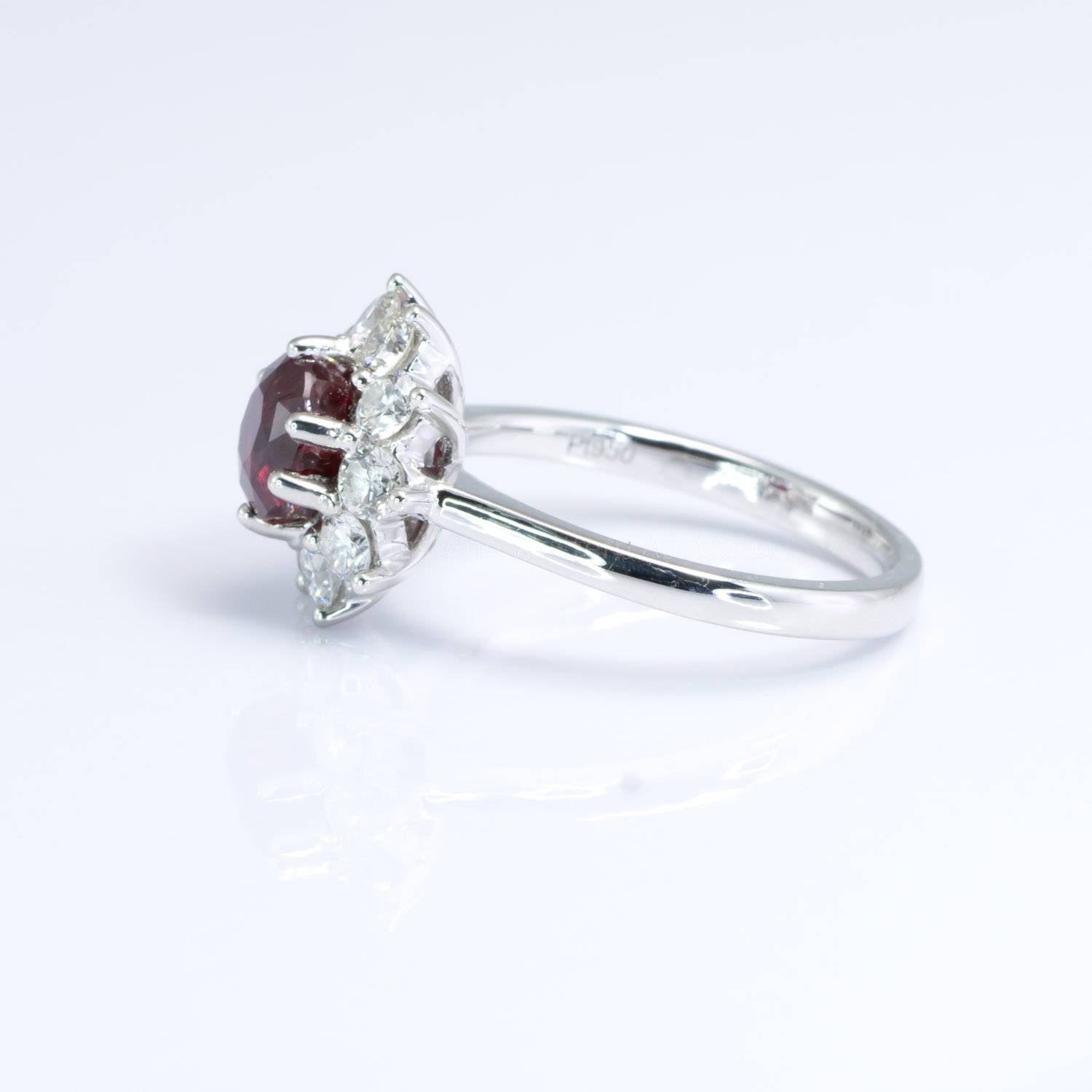 • Central stone: Natural unheated ruby, 6.71 x 6.66 x 5.06mm. Weight: 2.04ct.