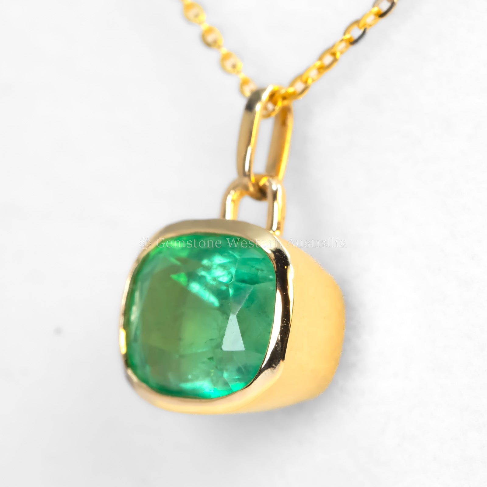 3.08ct Cushion Cut Colombian Emerald Pendant in 18K Yellow Gold