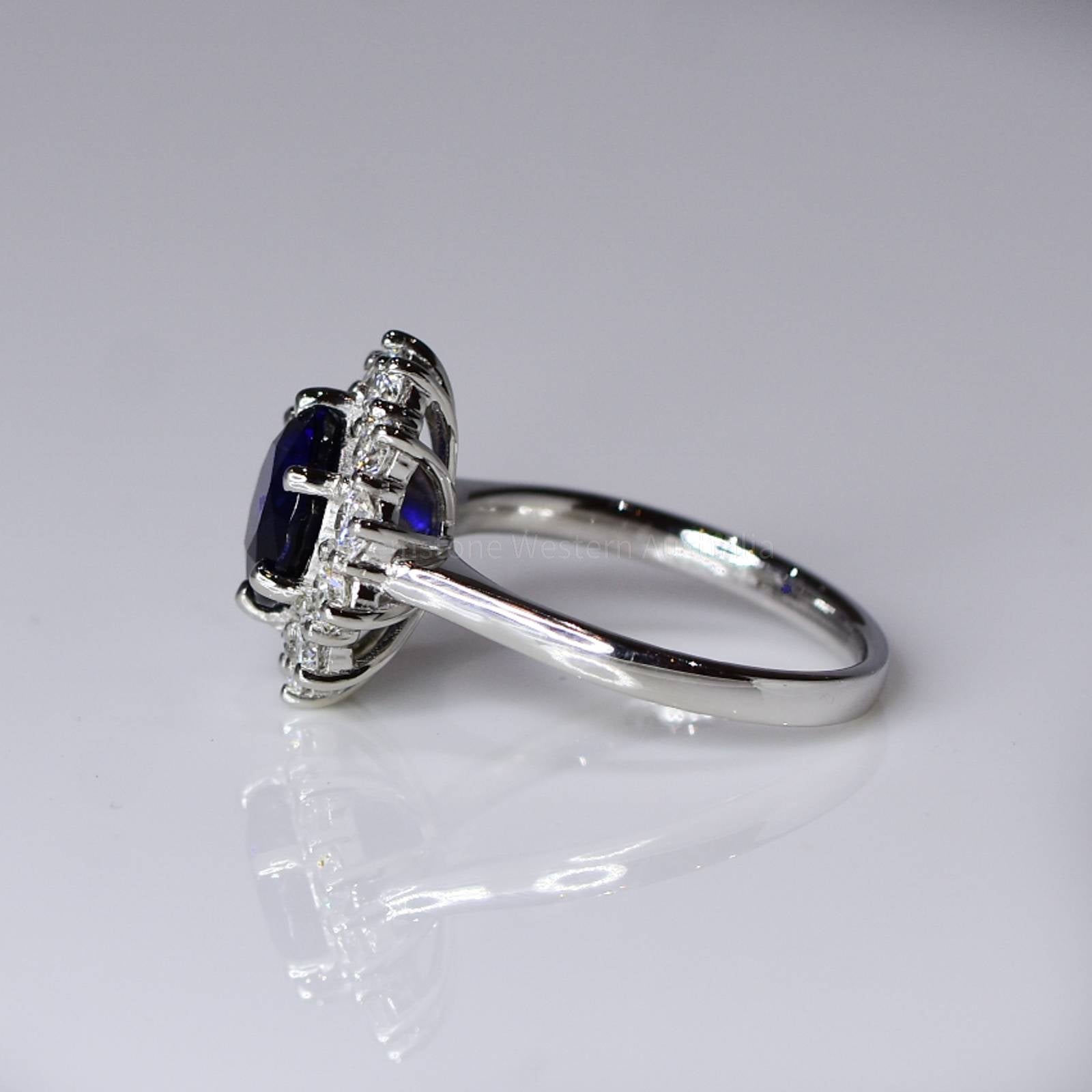 3.16ct Royal Blue Sapphire Diamond Halo Ring
