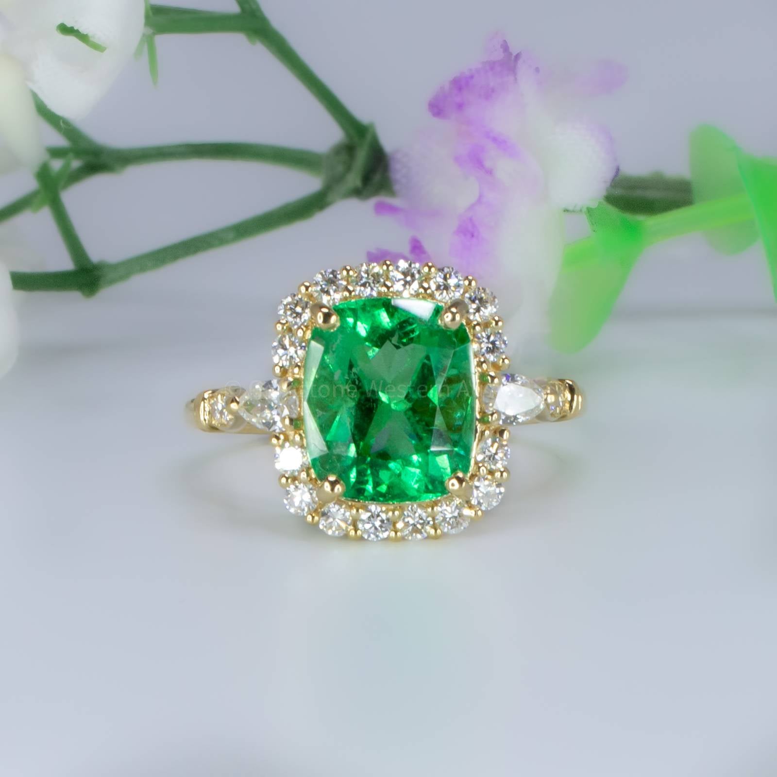 3.55ct Cushion Colombian Emerald Statement Ring