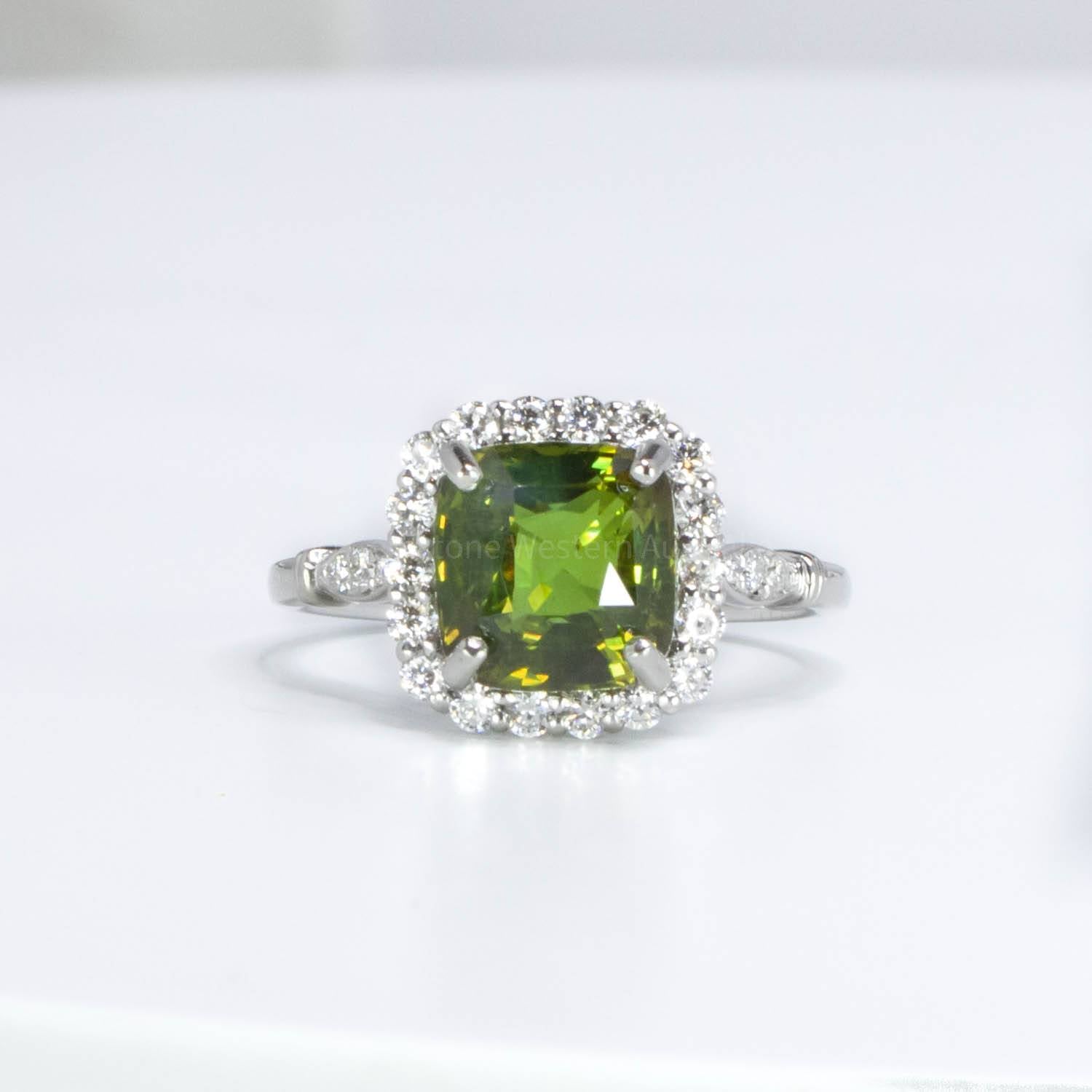 • Gemstone: Natural cushion cut alexandrite, 8.47 x 8.19 x 5.43mm approx. Weight: 3.60 carats. Report #202103219182.