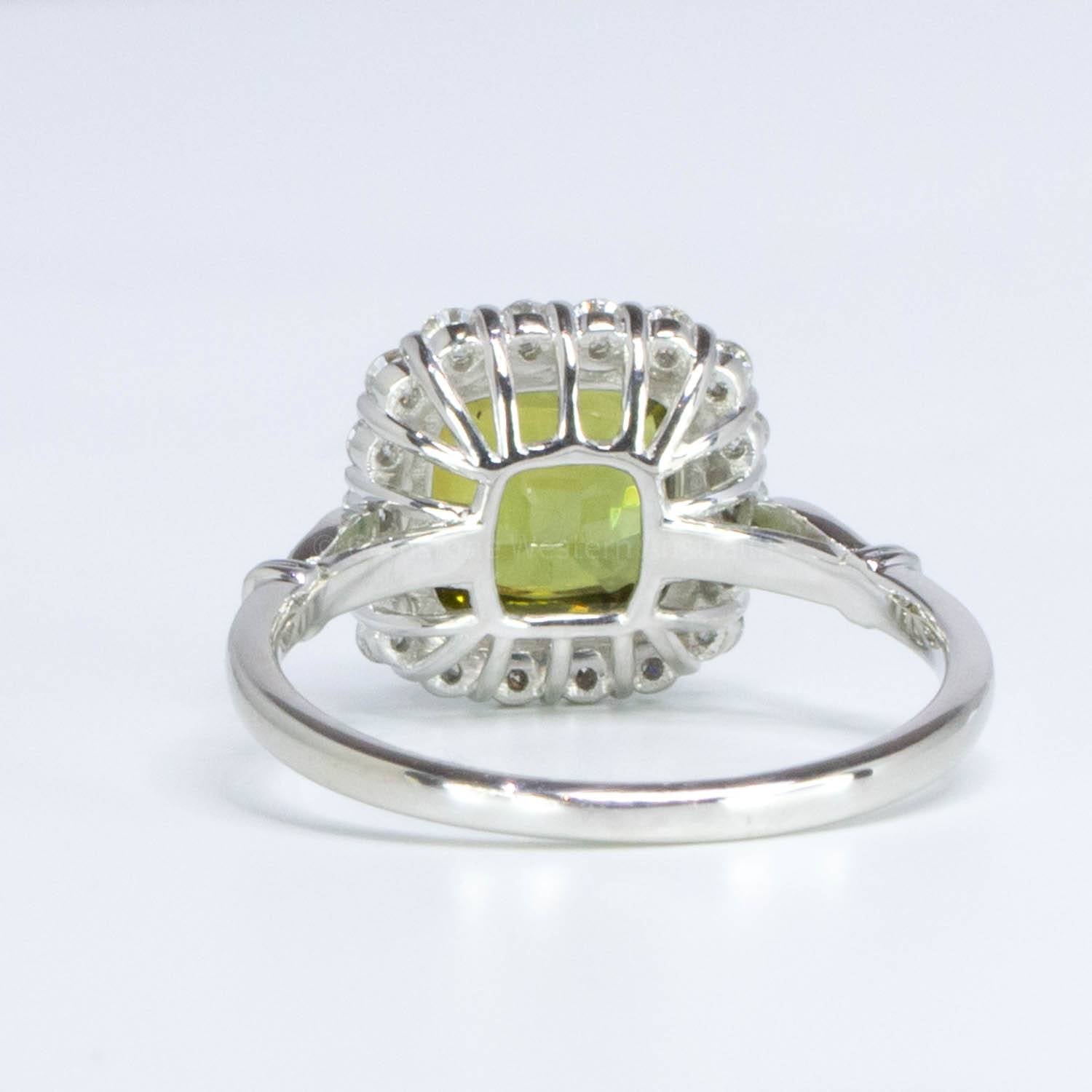 A spectacular 3.60ct Alexandrite Diamond Halo Ring was created to showcase a one-of-a-kind natural alexandrite that weights 3.60 carats with a stunning green to pink colour change. The alexandrite features a sophisticated cushion cut and is surrounded by a halo of round brilliant cut diamonds. Additional brilliant-cut diamonds adorn the shoulders of the ring. The ring is made of 950 platinum. This ring presents an incredible opportunity for investment given that natural alexandrites are rare and something hardly found in a piece of jewellery, making it an exclusive item perfect to be worn as an everyday engagement ring (it is a hard gemstone). The true colour change of the alexandrite in this Alexandrite Diamond Halo Ring can’t be displayed in the photos. Explore our collection of 2000+ gems in stock, including Loose Alexandrites. Can't find what you want? Contact us here for a wider selection. For custom designs, expert advice, and more information, book here a complimentary appointment with our expert gemologist and designers.
