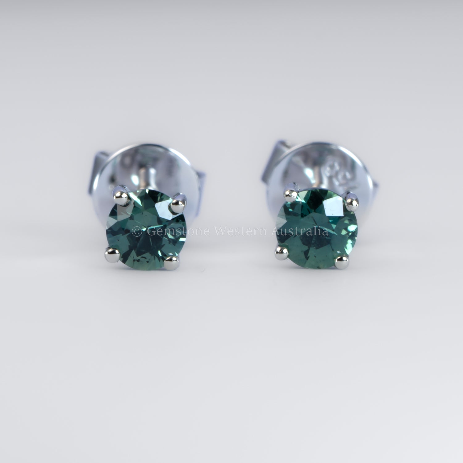Australian teal sapphire stud earrings 18K white gold These elegant Australian teal sapphire stud earrings feature two round-cut sapphires, totaling 0.58 carats, set in a classic 18K white gold 4-prong basket. The unique teal hue of these sapphires, known for their captivating color, adds a modern twist to a timeless design. Handcrafted to perfection, these studs are ideal for both daily wear and special occasions. Enhance your collection with the natural beauty and brilliance of Australian teal sapphires, an exquisite choice for anyone seeking something truly distinctive. Can’t find what you’re looking for? Click here to explore our collection of earrings.   SPECIFICATIONS: 1982779