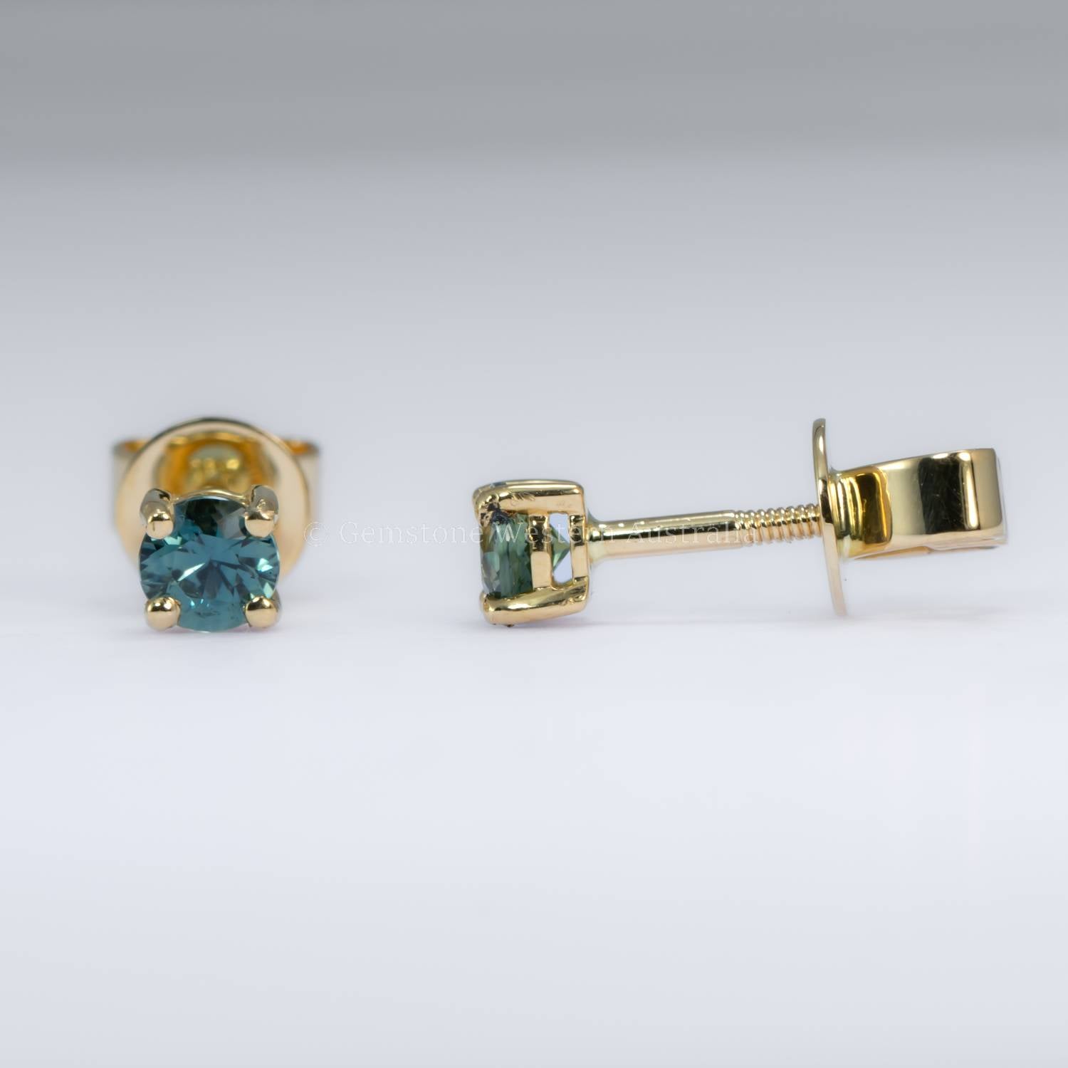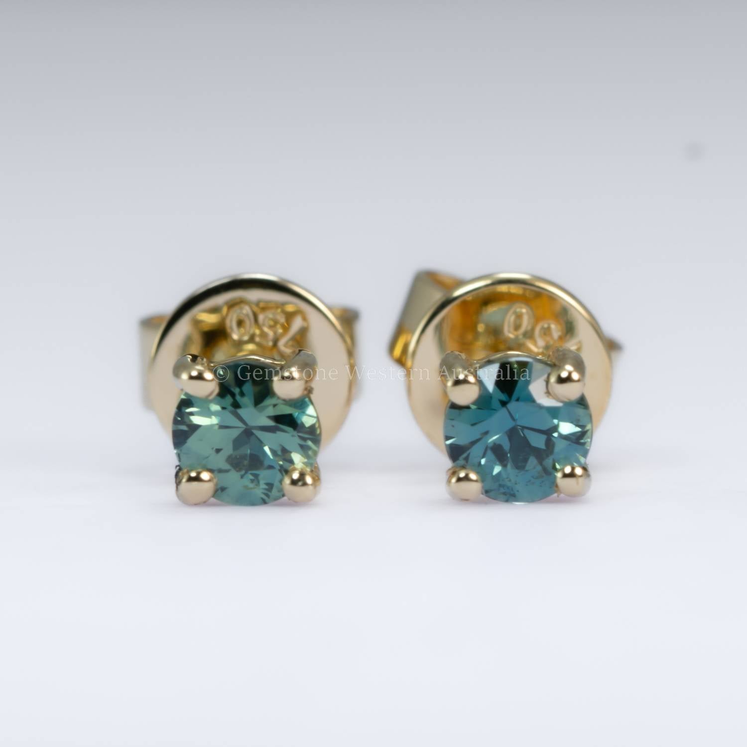 Australian Teal Sapphire Stud Earrings in 18K Yellow Gold - 0.42ct