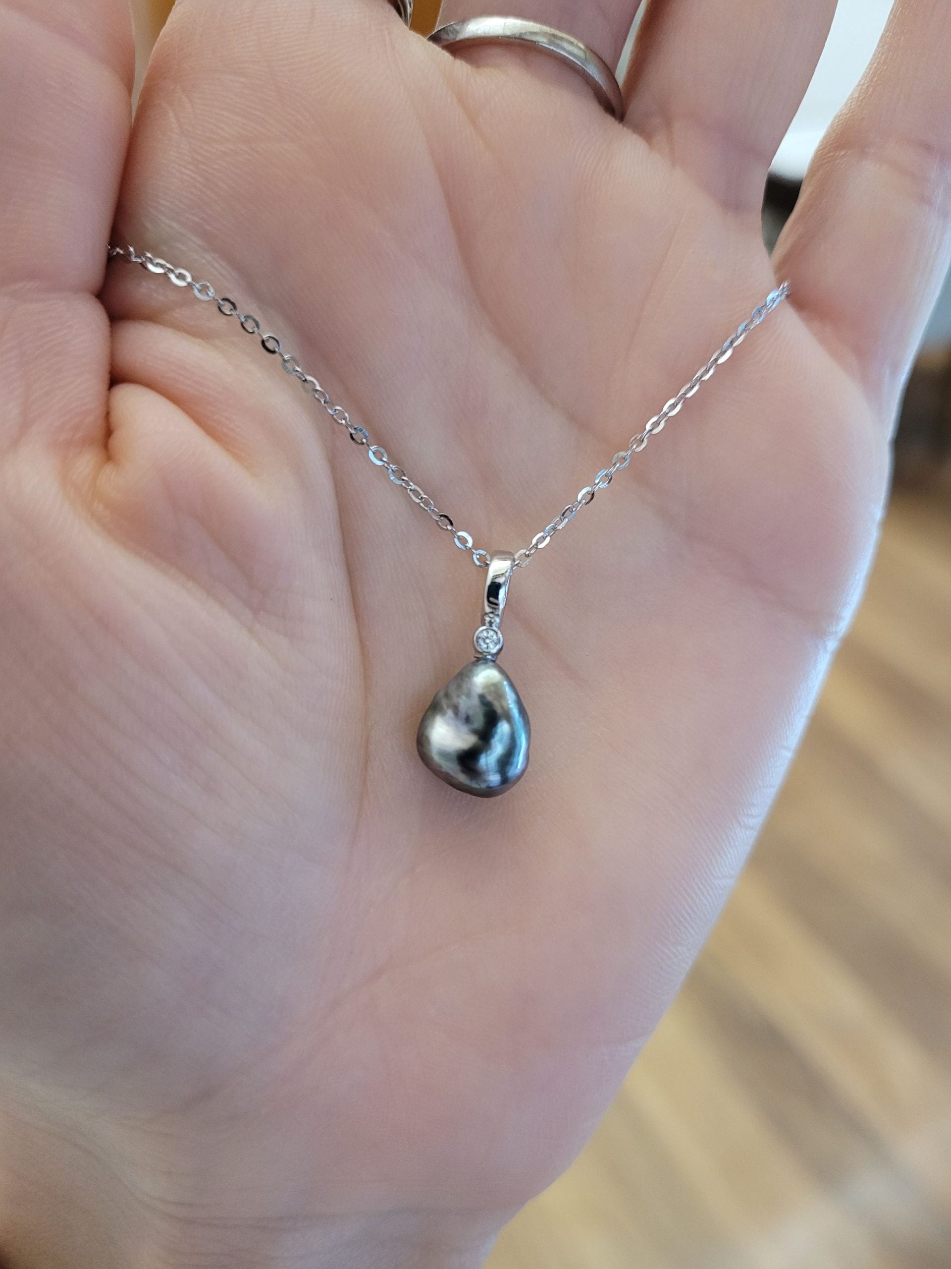 Baroque Tahitian Pearl Pendant with Diamond in 18K White Gold