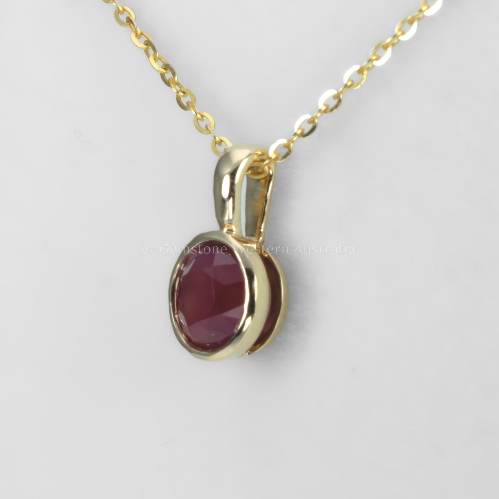 Bezel Set Unheated Ruby Pendant in 18K Yellow Gold