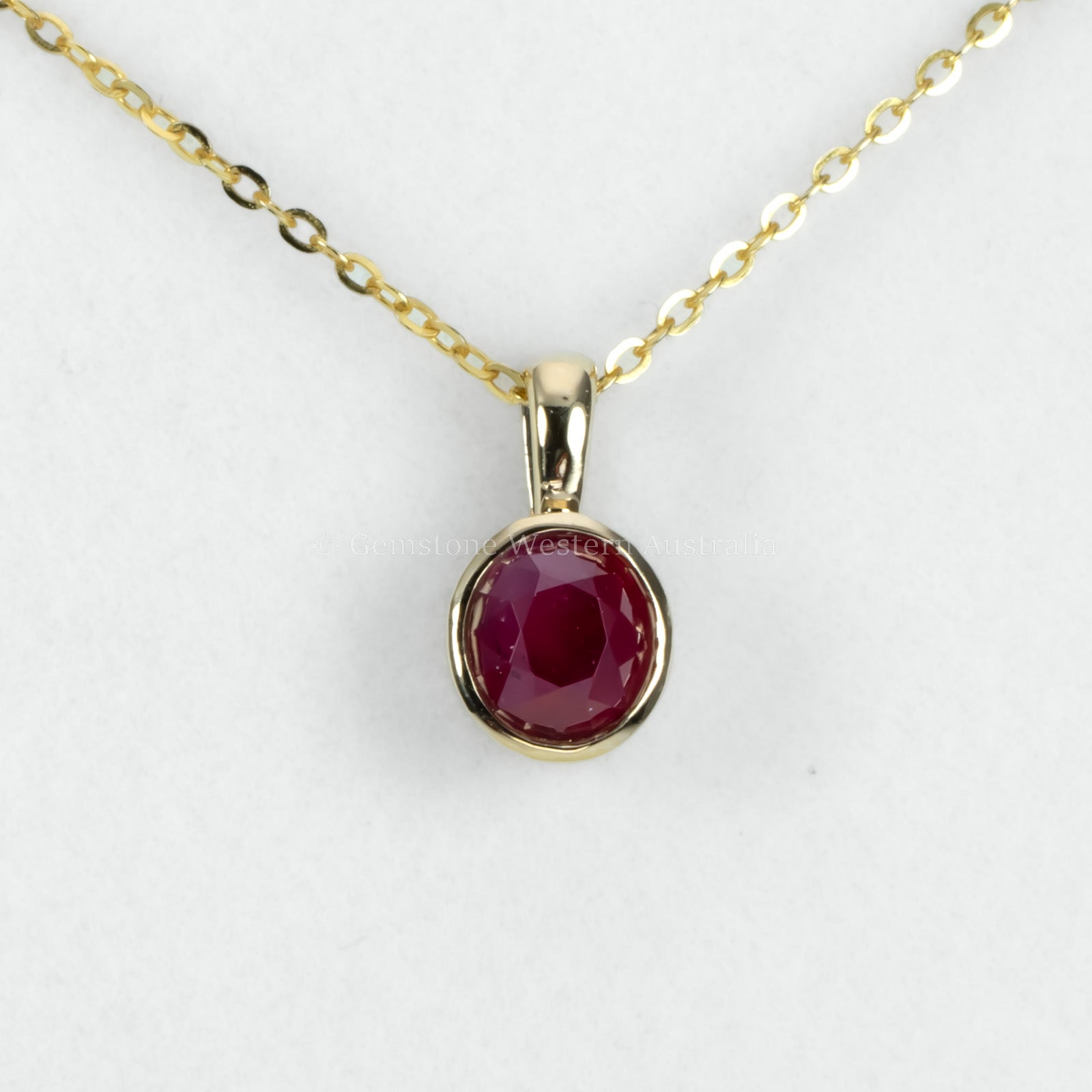 This unheated ruby pendant features a 0.90ct natural ruby in a classic oval cut, bezel set in rich 18K yellow gold. The clean lines of the setting highlight the ruby’s vivid red colour while offering a smooth, modern silhouette that’s both elegant and durable.