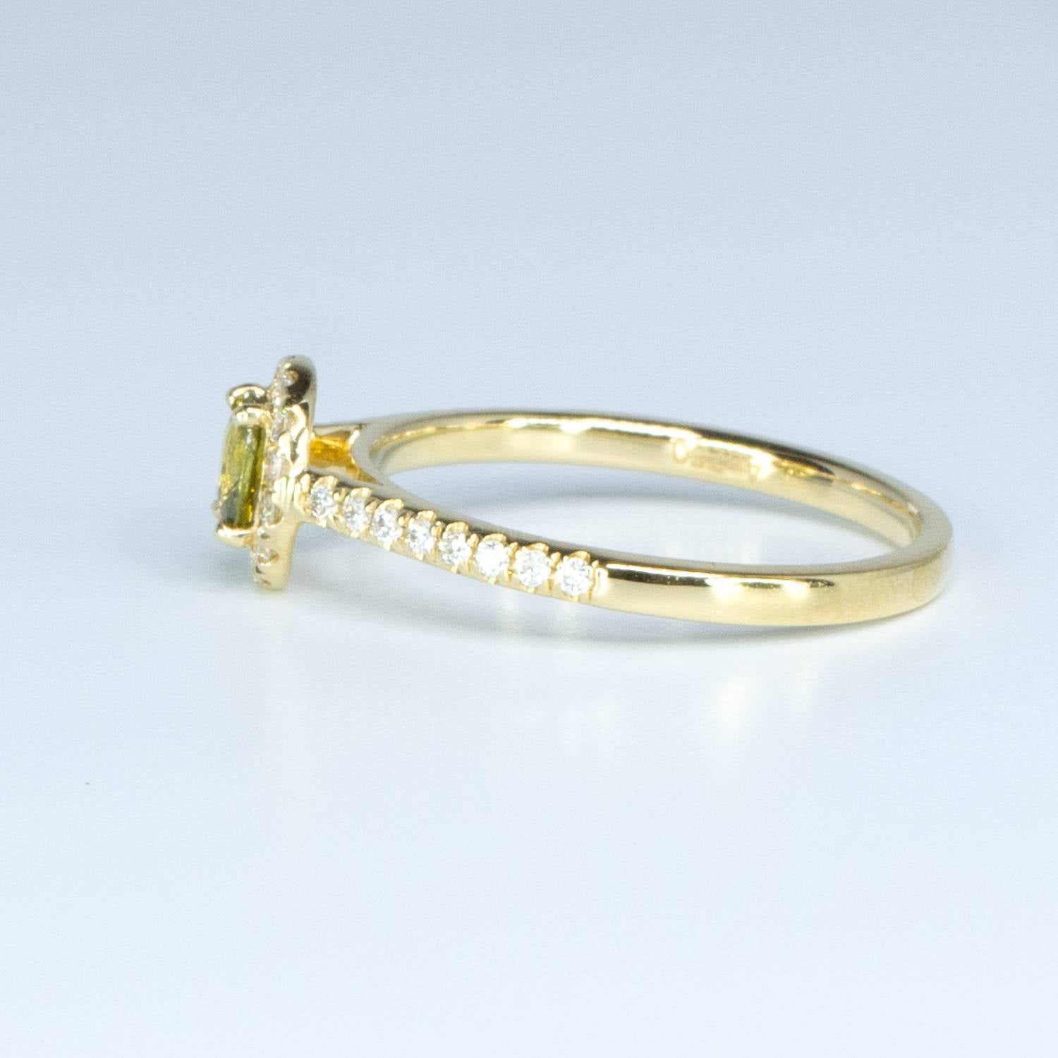 A gorgeous Colour Change Alexandrite Ring features a unique cushion cut natural alexandrite surrounded by a delicate halo of round brilliant cut diamonds. The ring’s shank is also adorned by diamonds all set in 18 carats yellow gold.  The natural alexandrite has a beautiful green colour in daylight that changes to purplish red in incandescent light. Pictures do not do justice to the beauty of the natural alexandrite.  Explore our collection of 2000+ gems in stock, including Loose Alexandrites. Can't find what you want? Contact us here for a wider selection. For custom designs, expert advice, and more information, book here a complimentary appointment with our expert gemologist and designers.