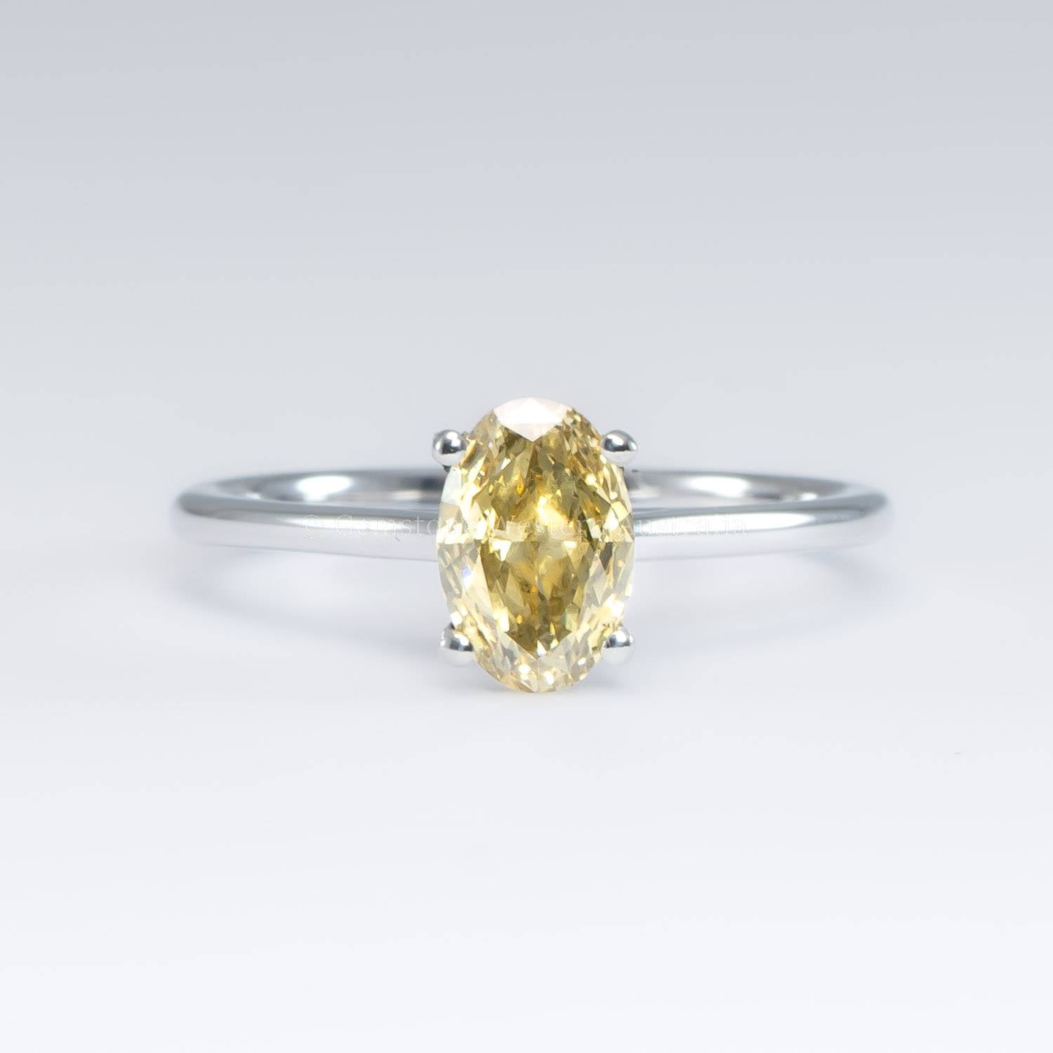 Discover timeless elegance with our 0.91ct Fancy Brownish Yellow Diamond Solitaire Ring. This exquisite piece showcases a GIA-certified oval fancy colour diamond, expertly set in a sophisticated platinum band. The unique brownish-yellow hue of the diamond adds a touch of vintage charm to this classic solitaire design, making it a perfect choice for those who appreciate both tradition and individuality. Experience unparalleled craftsmanship and elegance with this stunning diamond ring.