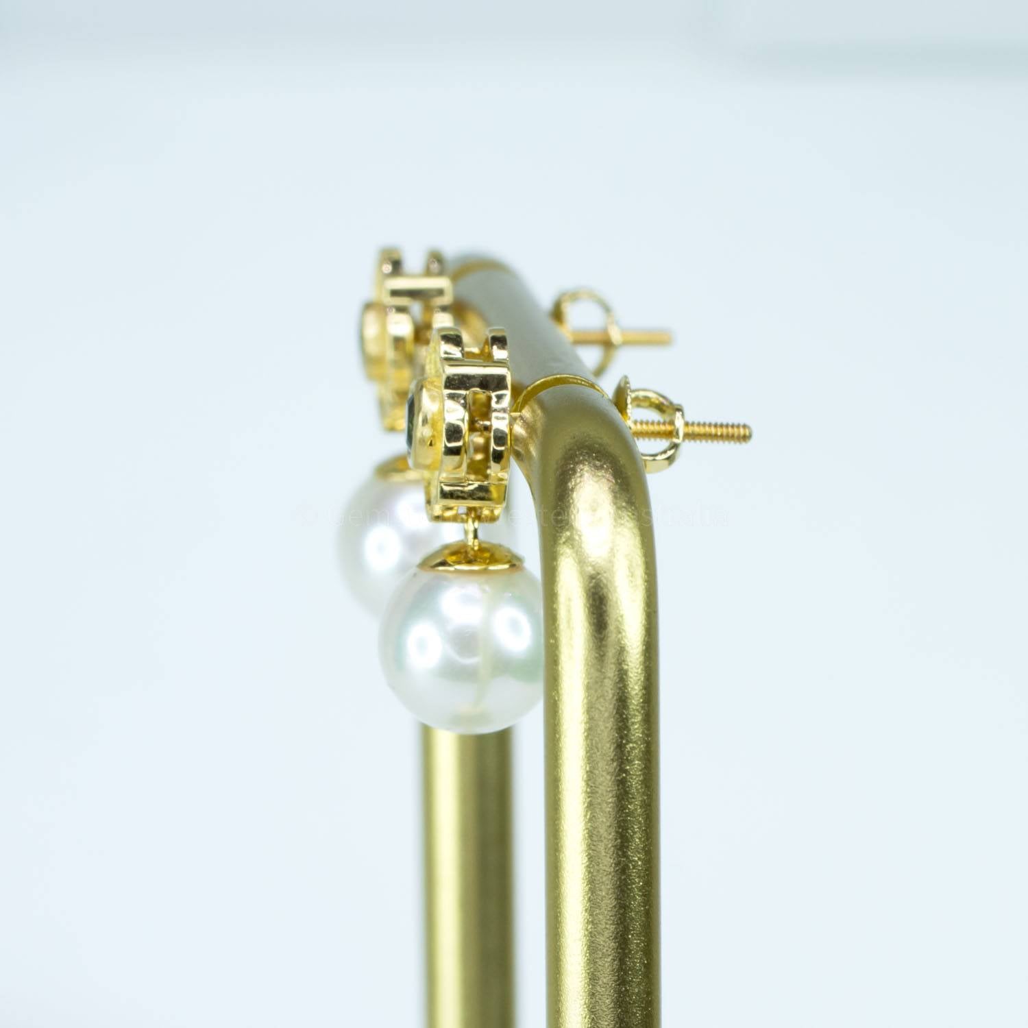 • Central stones: Two natural akoya white pearls.Dimensions: 8.0mm.