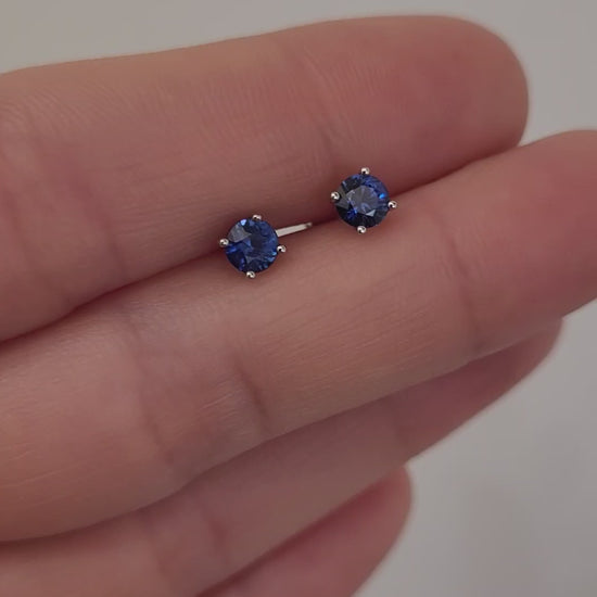 Blue Sapphire Stud Earrings in Platinum