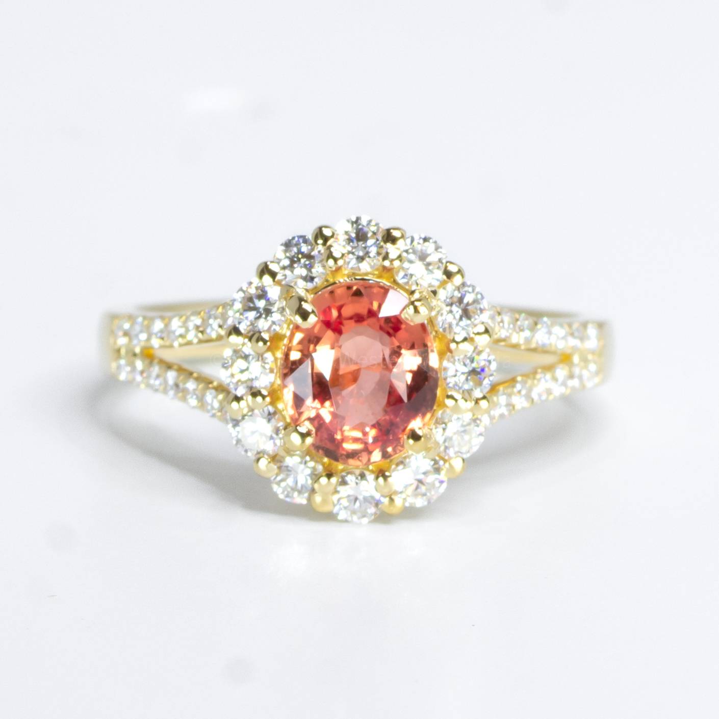Natural Padparadscha Sapphire Halo Ring Padparadscha and Diamonds Ring in 18K Gold