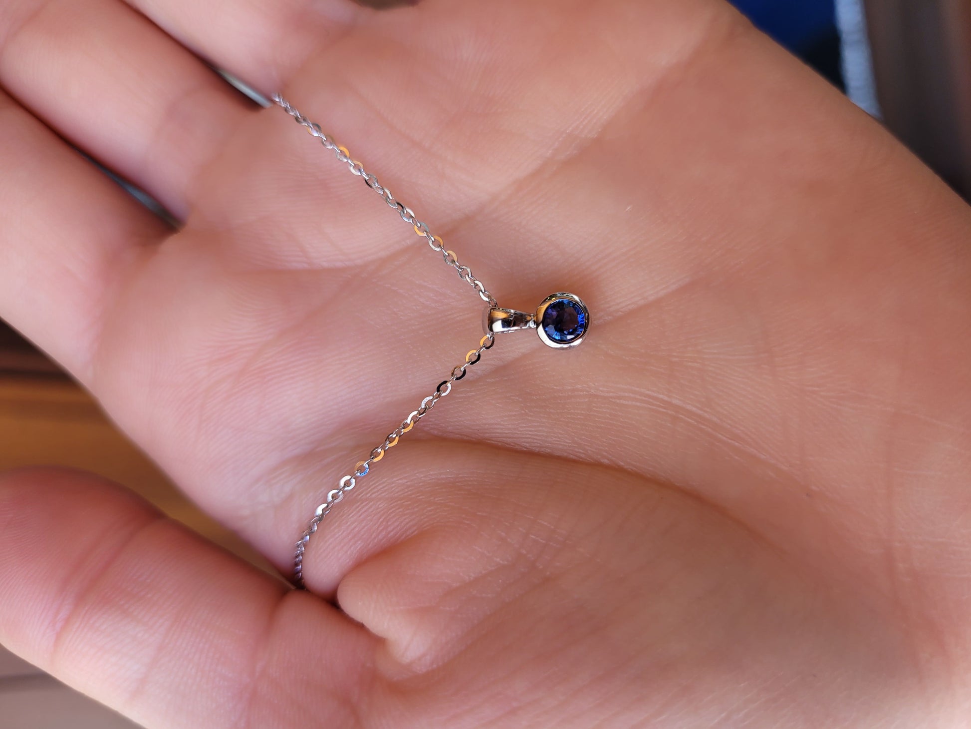 The sleek platinum bezel keeps this pendant feeling modern and effortless. The blue sapphire catches the light beautifully, revealing a subtle depth that makes it a piece you’ll enjoy wearing every day.