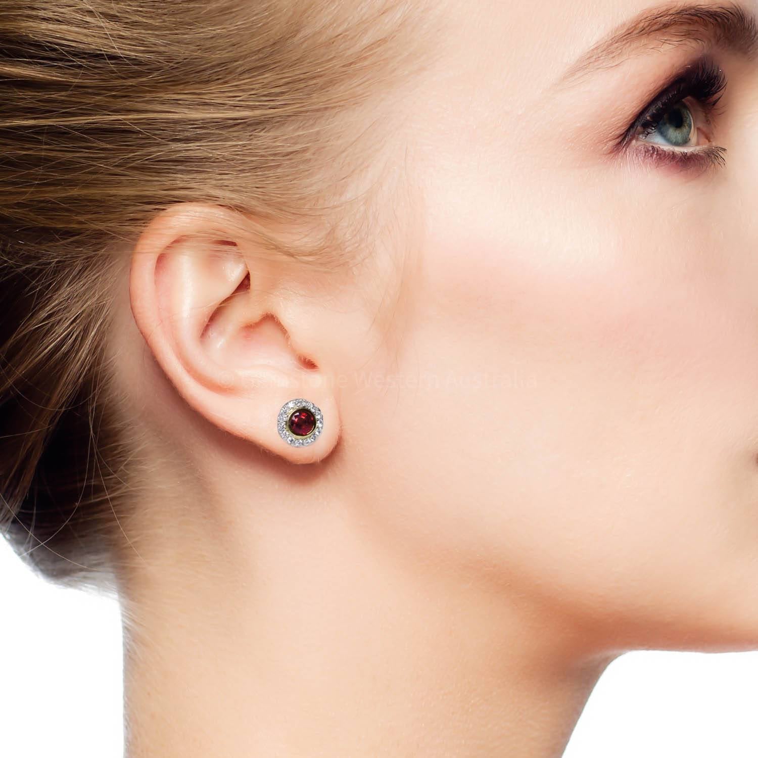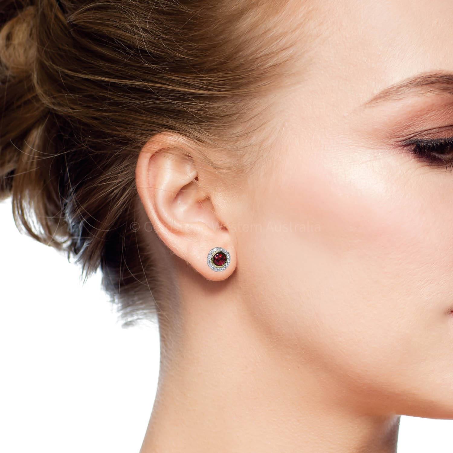 Natural Unheated Ruby Earrings with Diamond Halo Stud Earrings 18K Gold