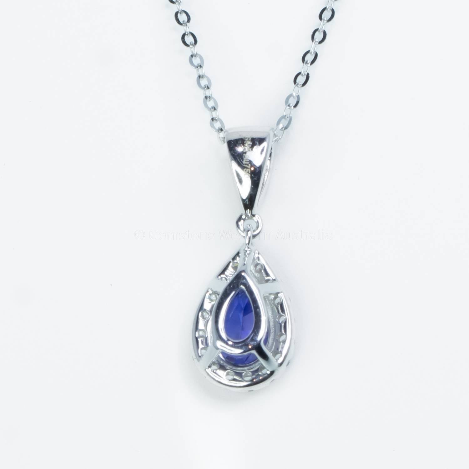 A stunning Natural Unheated Sapphire Diamond Halo Pendant  features a stunning natural, unheated  cornflower blue sapphire weighting 1.05ct. This piece is a perfect gift to celebrate life's most significant moments. A delicate halo of scintillating diamonds that complements the gorgeous sapphire.  RRV: AUD 5,800 SPECIFICATIONS: 1982500 Gemstone: Natural, unheated, pear cut, cornflower blue sapphire. 7.94 x 4.70 x 3.38mm. Weight: 1.05ct.  Side Stones:  *17 - 1.3mm Round Brilliant Cut Diamonds. *1 - 3.6 x 2.5 x 1.7mm Pear Brilliant Cut Diamond.  Material: 18K white gold. Total Weight: 1.5 grams approx. Dimensions: 20.5 x 8.15mm approx. *Chain is not included. We are a family owned business of gemologist, miners and dealers specialised in natural emeralds and colour gemstones with boutiques in the centre of the emerald world, Bogota, Colombia and in Perth, Australia. Being in the field for over 40 years, we can assure you, you are getting expert advise. We love what we do and are all about making sure you fully understand what is in the piece you are purchasing and that it is real and natural. We custom create all our jewellery. If you have a special request for a custom piece of jewellery tell us about it  so we can help you bring your design to life.