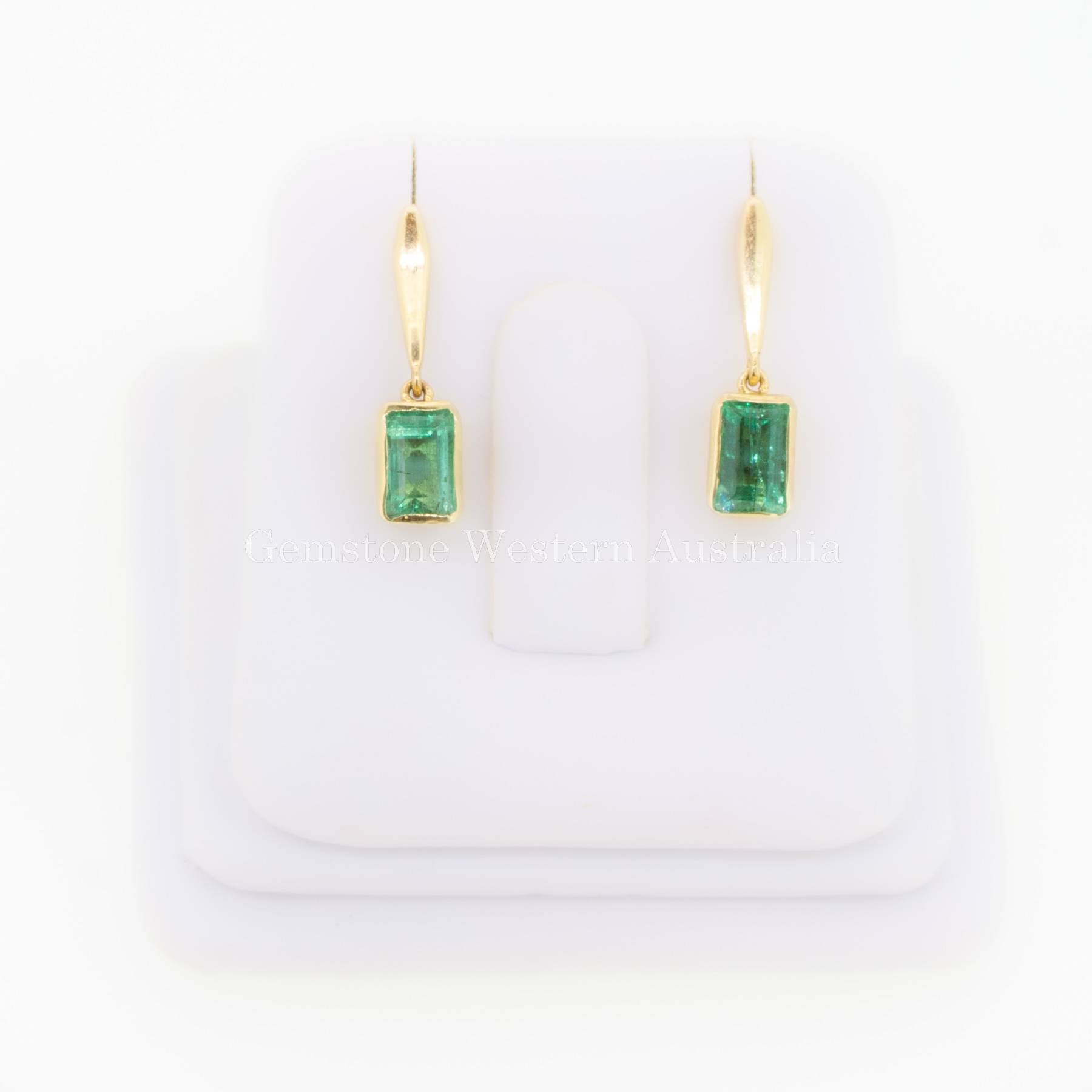 Indulge in the exquisite allure of these captivating earrings featuring vivid green emeralds as their sole focal point. With their exceptional clarity and dazzling brilliance, these natural Colombian gemstones take center stage in flawless emerald-cut designs. Encased in 18-carat yellow gold bezel settings, they gracefully dangle from reverse tapered bars, showcasing a contemporary and elegant design that leaves a lasting impression. RRV $7.650 Explore our collection of 2000+ gems in stock, including Loose Emerald pairs. Can't find what you want? Contact us here for a wider selection. For custom designs, expert advice, and more information, book here a complimentary appointment with our expert gemologist and designers.