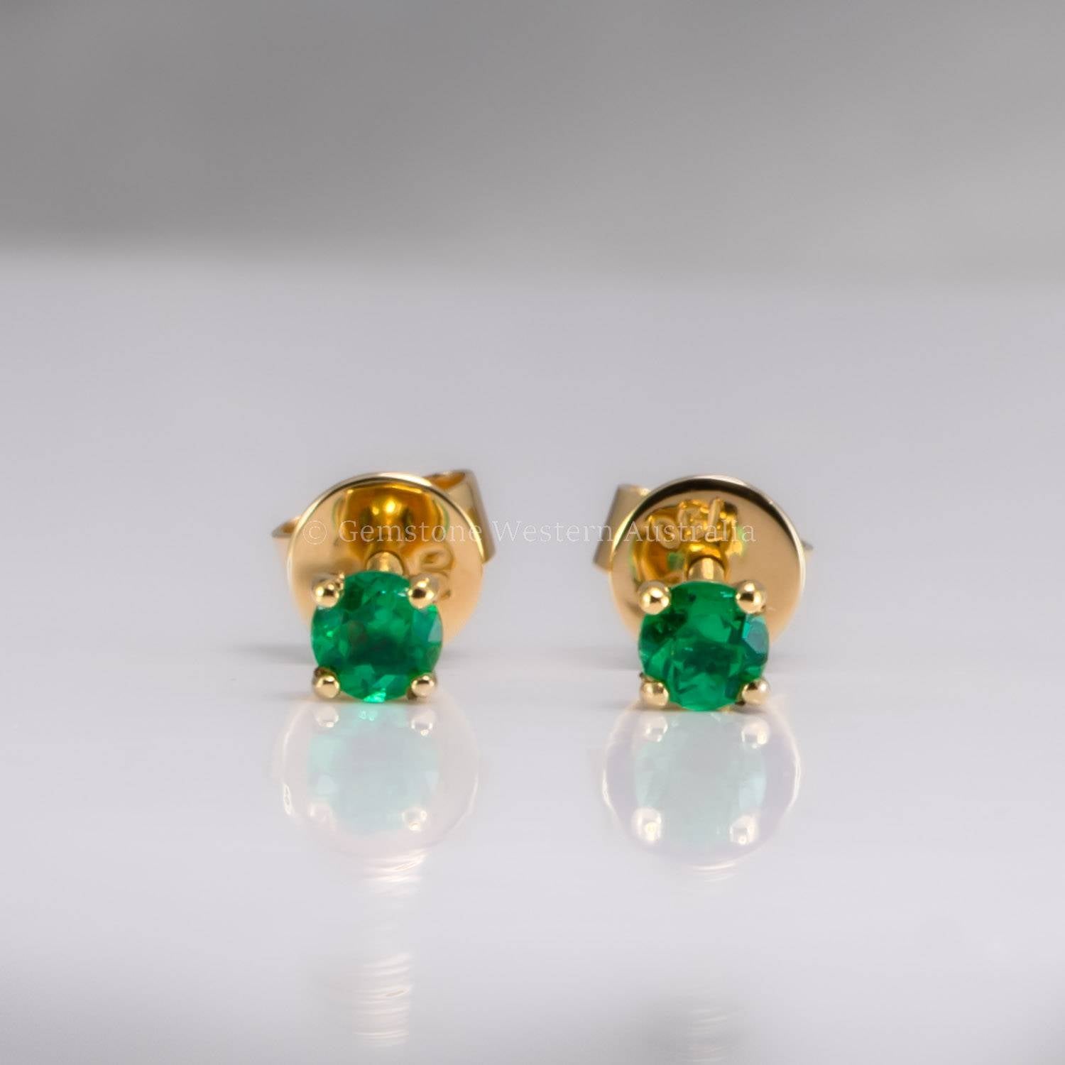 Petite Round Natural Colombian Emerald Stud Earrings in 18K Yellow Gold | Emerald Jewellery