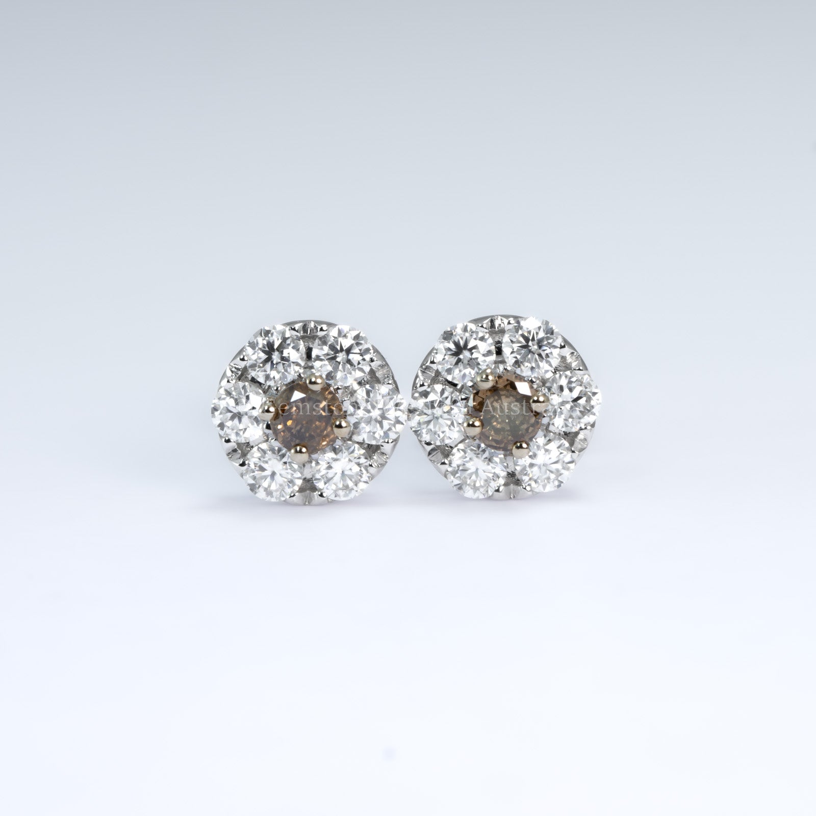 Stud Earrings with Western Australian Champagne Diamonds & Moissanite Halo