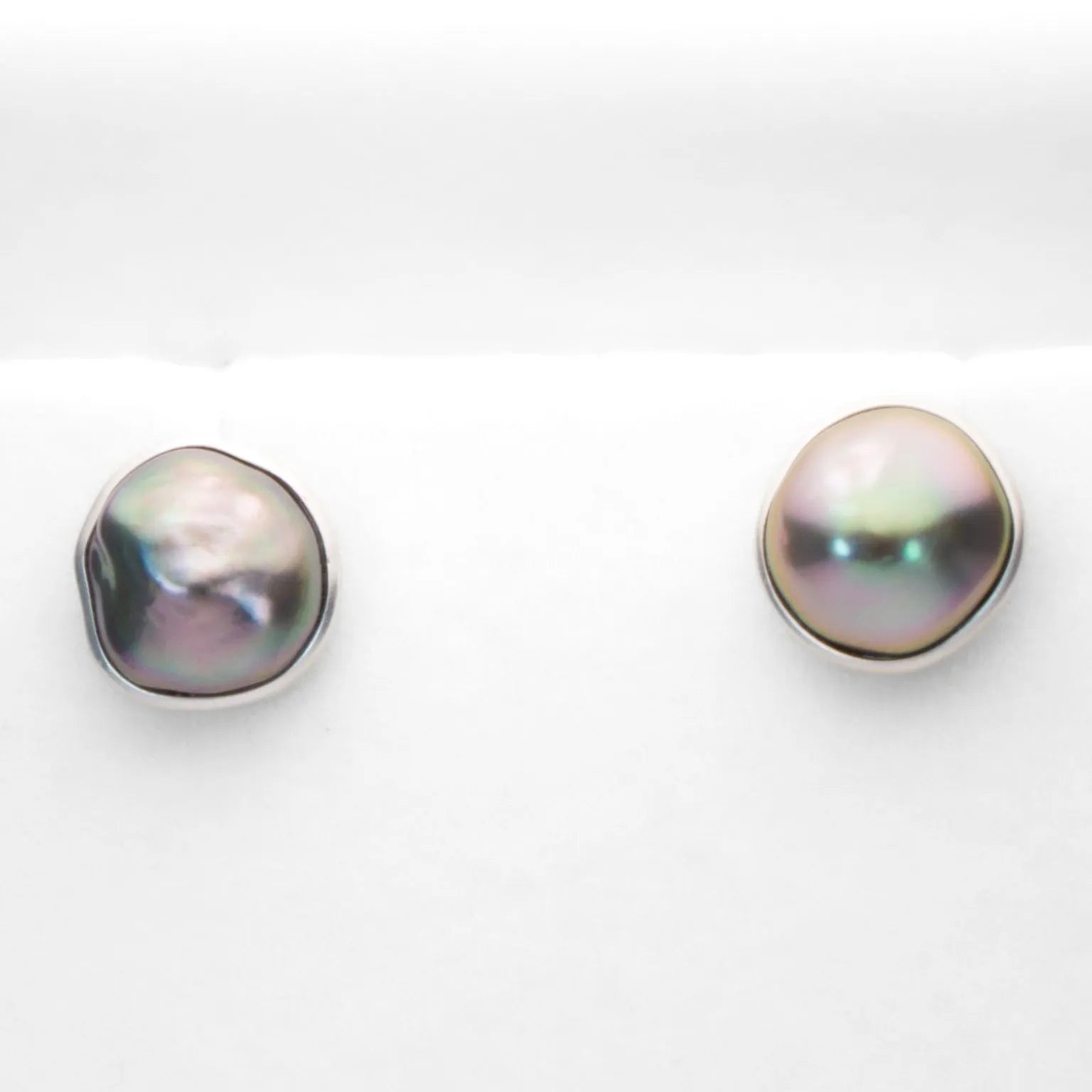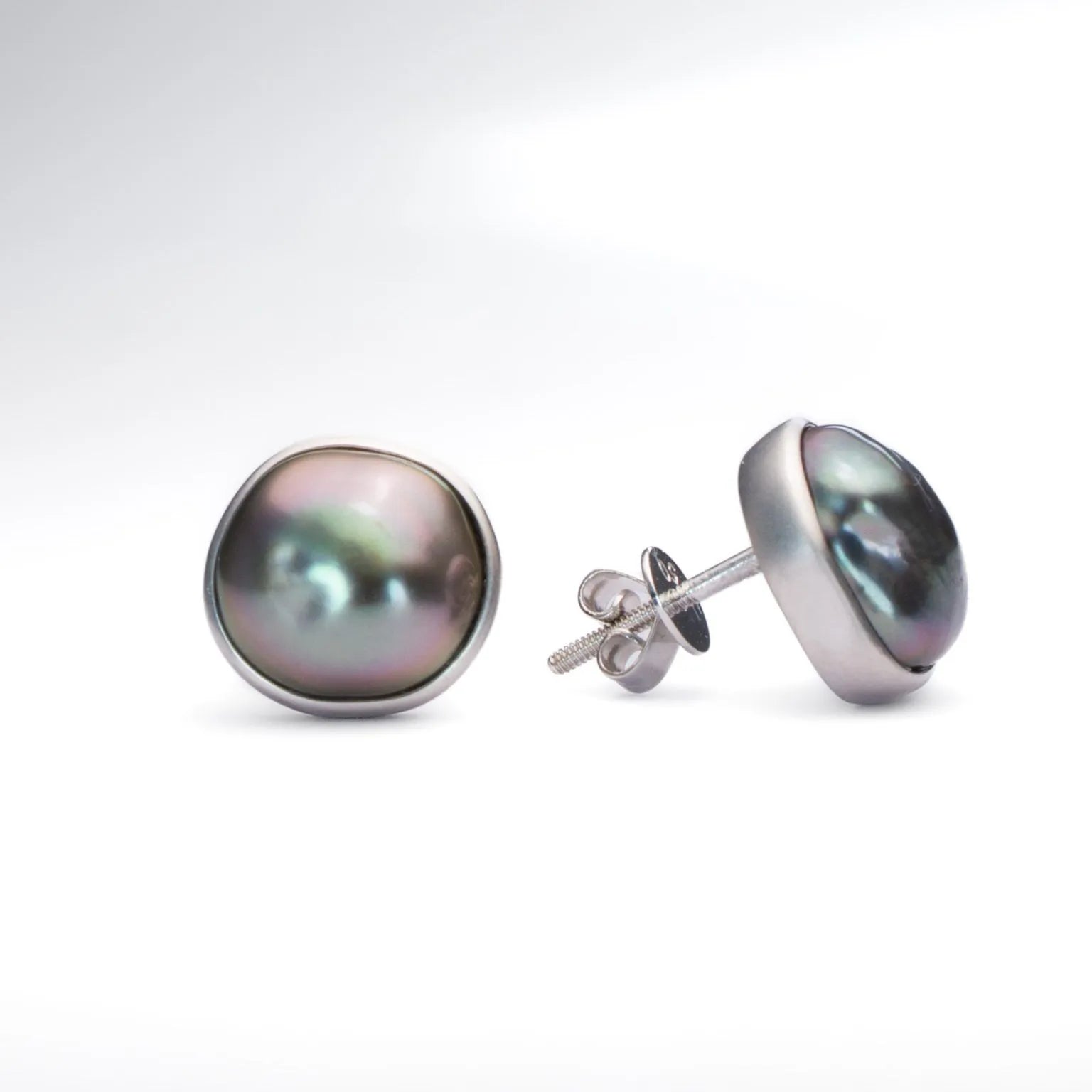 Tahitian Pearl Stud Earrings Tahitian pearl stud earrings offer timeless elegance with a contemporary edge. Each earring features a single, dark Tahitian pearl set in 18K white gold. The pearls display beautiful natural overtones, ranging from green to pink. Thanks to their bezel settings and secure screw-back posts, these earrings are both refined and practical. Whether you're dressing for the office or an evening out, they add effortless sophistication. Moreover, the 18K white gold setting enhances the luminous tones of the pearls without overpowering them. These studs are perfect for everyday wear. They also make a meaningful gift for a special occasion. SPECIFICATIONS: 1982872