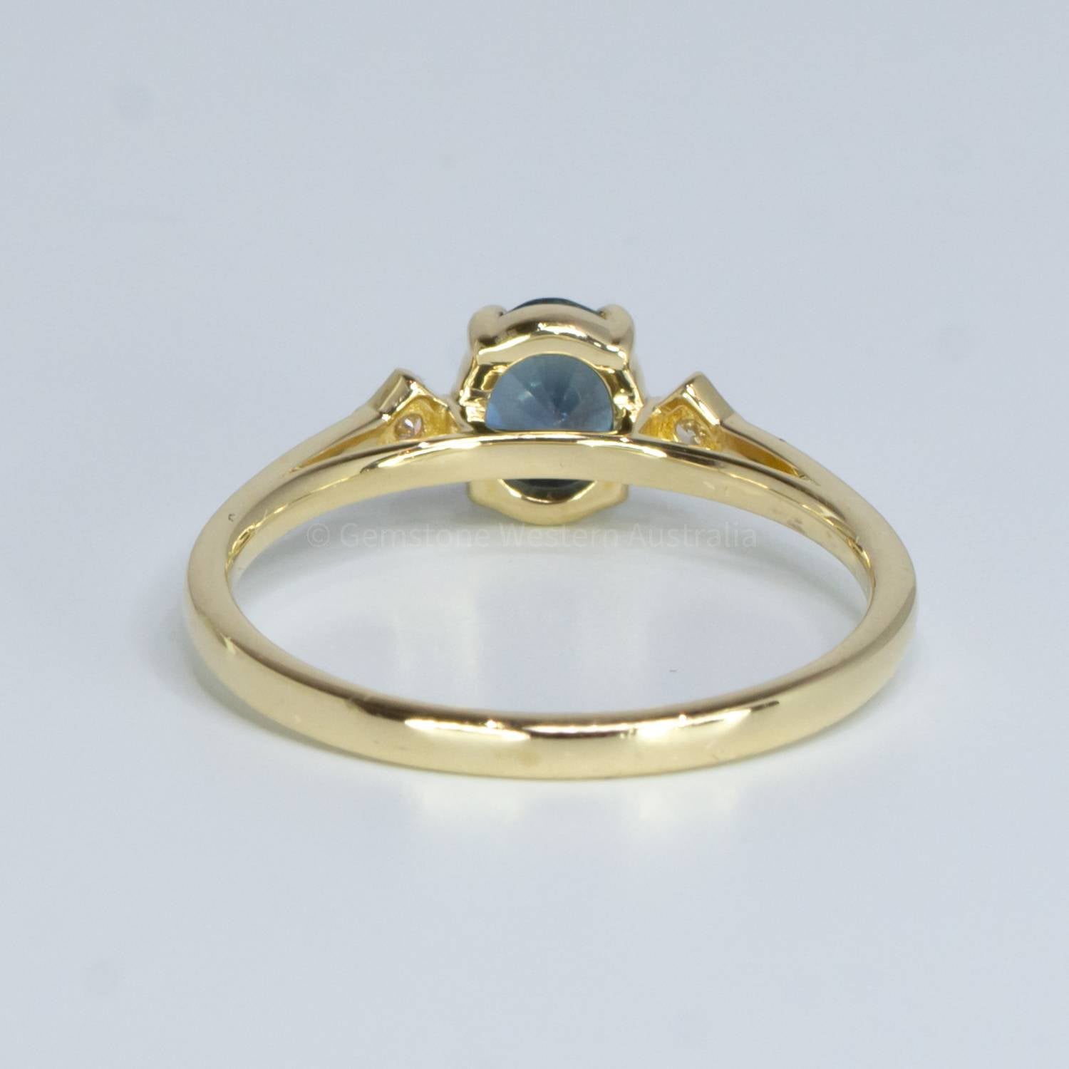 Unheated Teal Sapphire and Diamond Ring in Yellow Gold